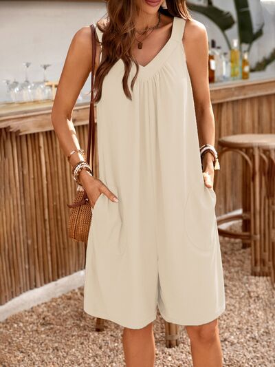Casual V-Neck Sleeveless Romper with Pockets