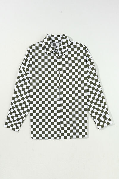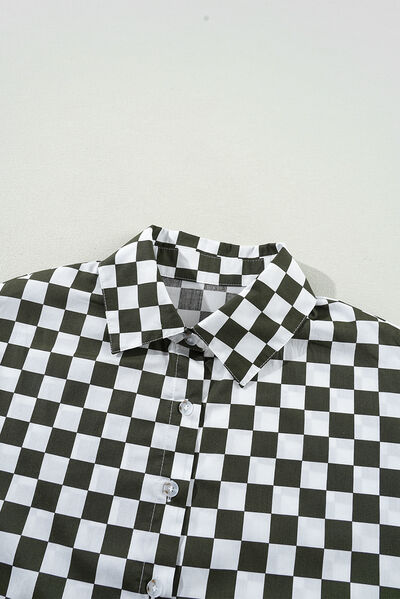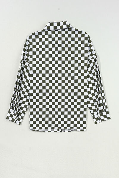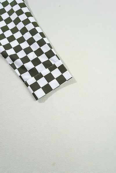 Checkered Collared Neck Long Sleeve Shirt