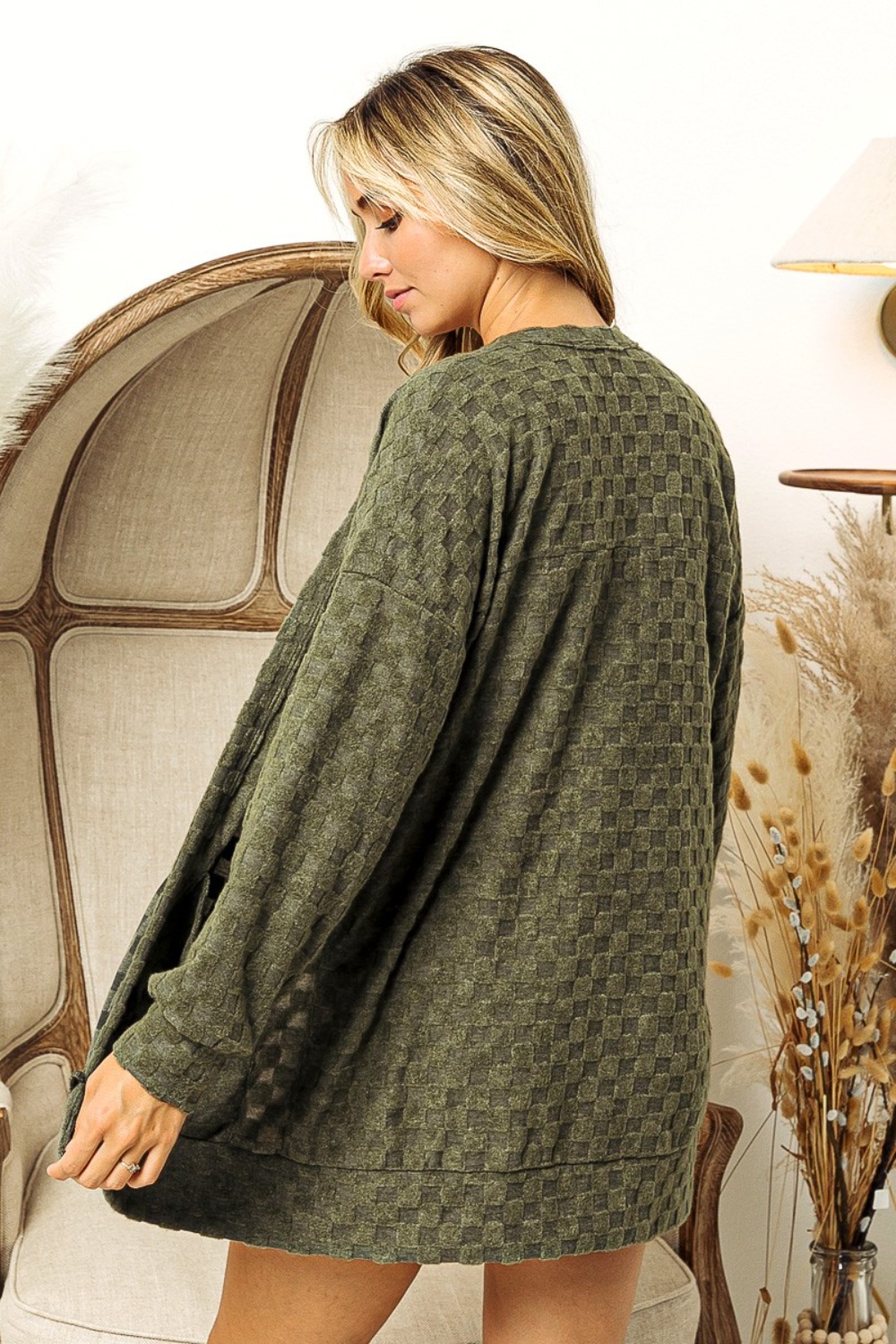 Checkered Long Sleeve Open Front Cardigan