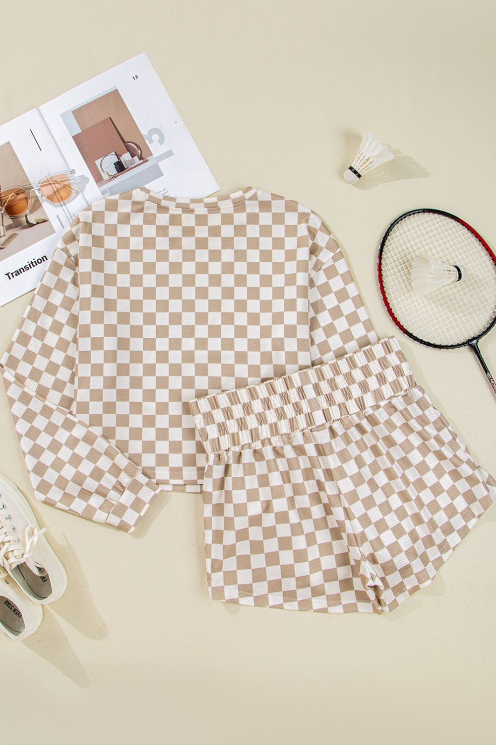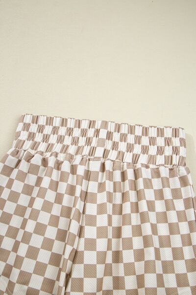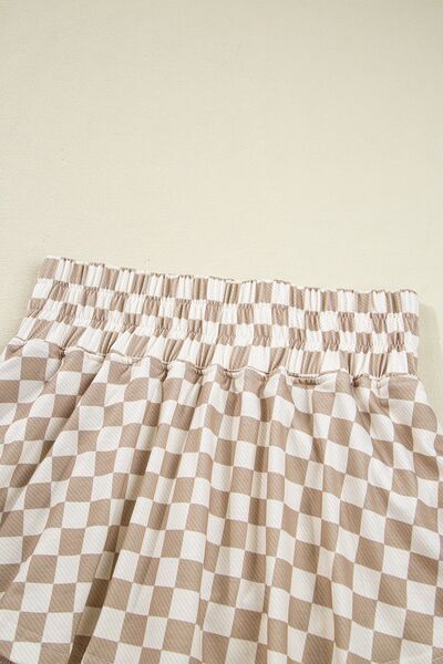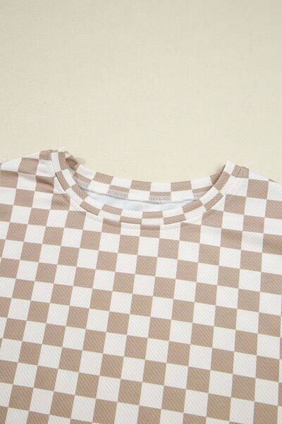 Checkered Long Sleeve Top and Skirt Two-Piece Set