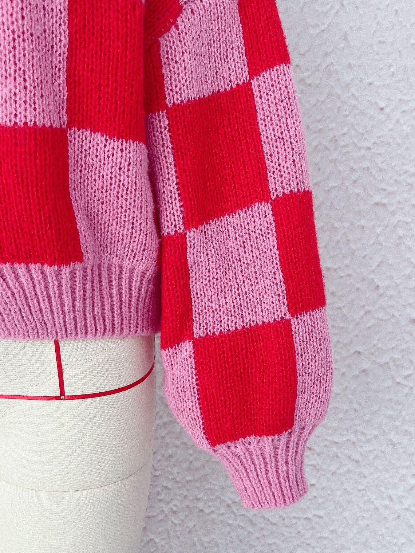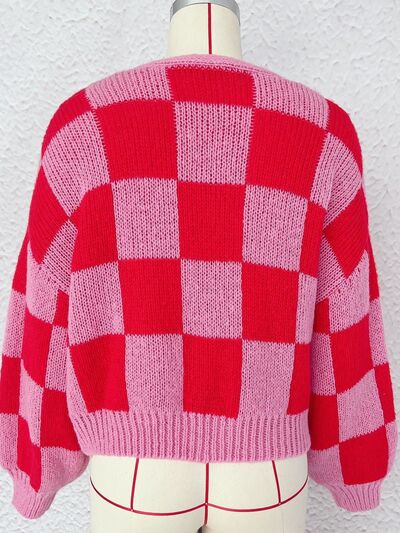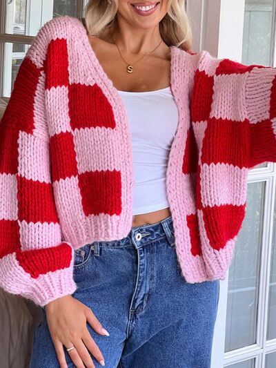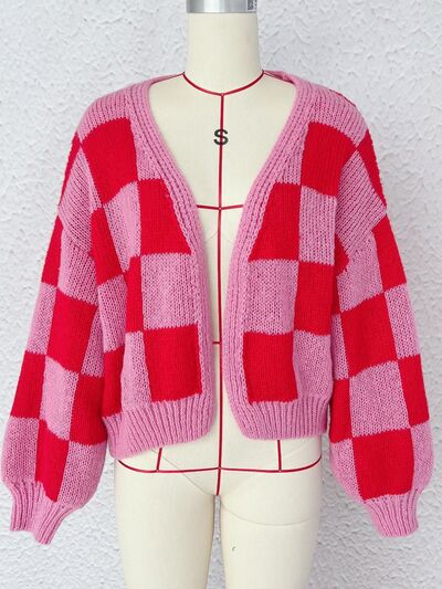 Checkered Open Front Long Sleeve Cardigan