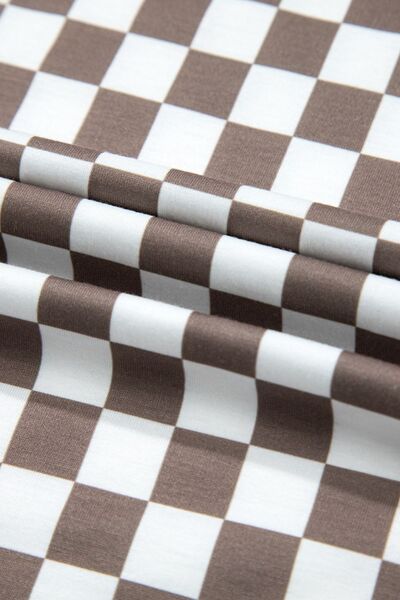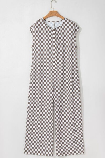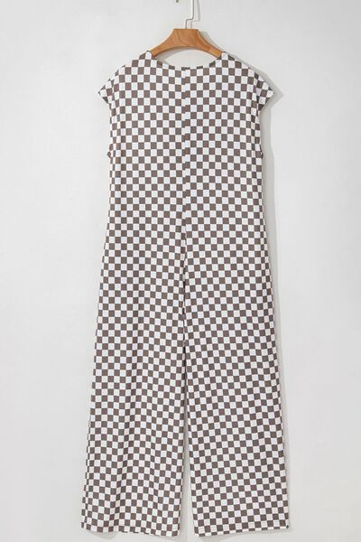 Checkered Print Crew Neck Wide Leg Jumpsuit