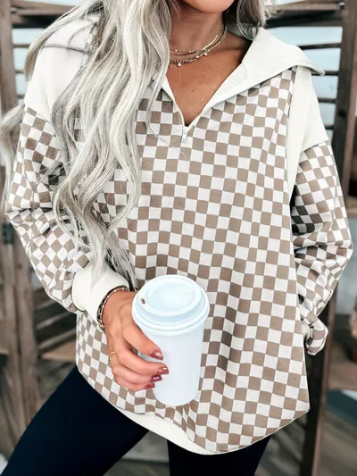 Checkered Quarter Zip Sweatshirt