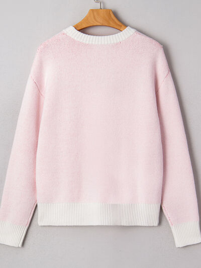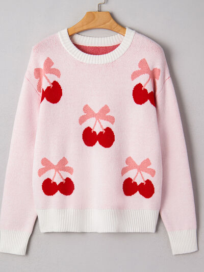 Cherry Pattern Drop Shoulder Sweater