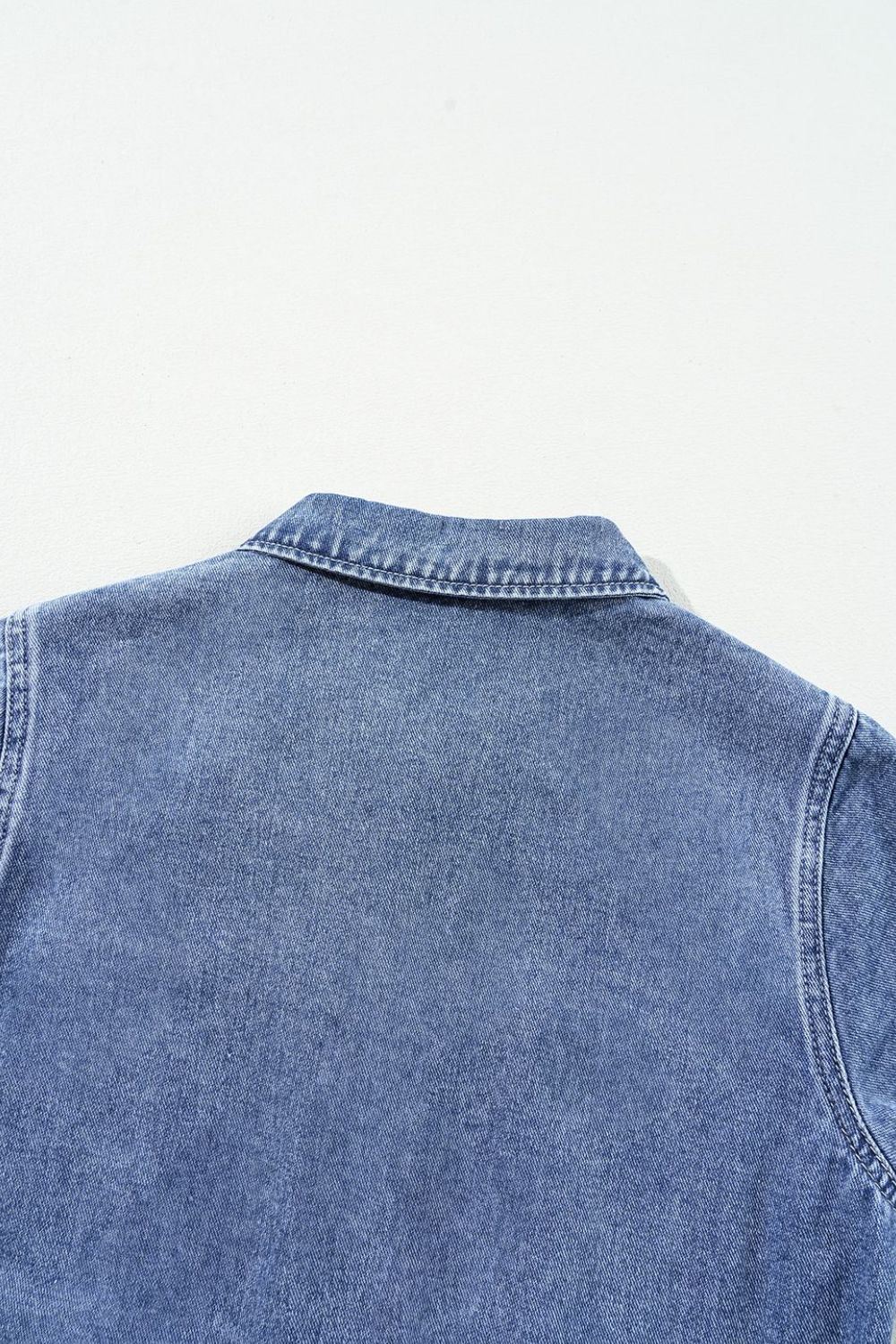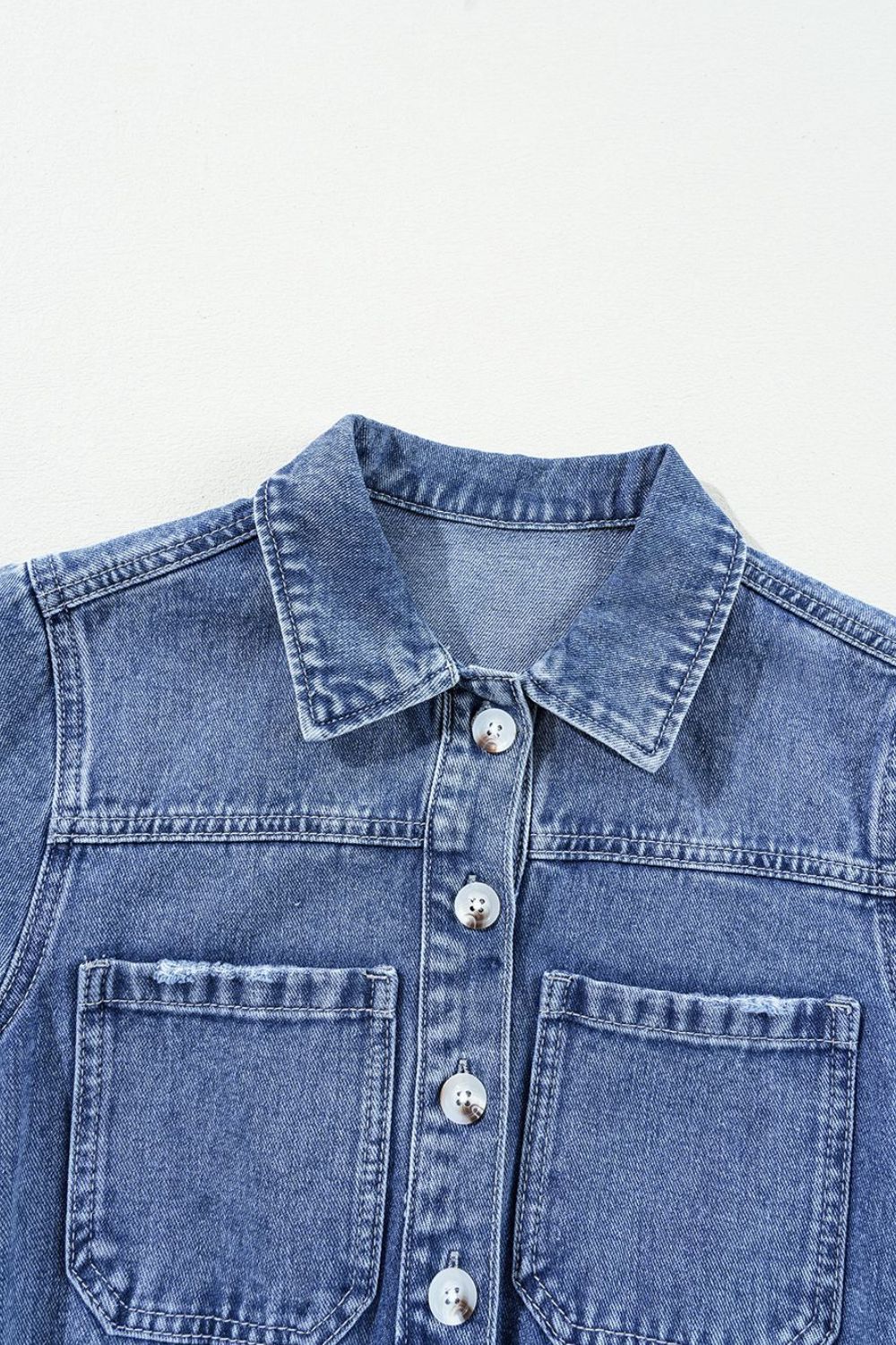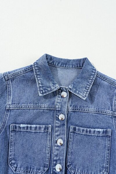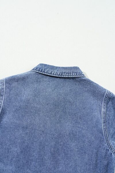 Chest Pocket Front Buttoned Folded Edge Denim Short Sleeve Romper