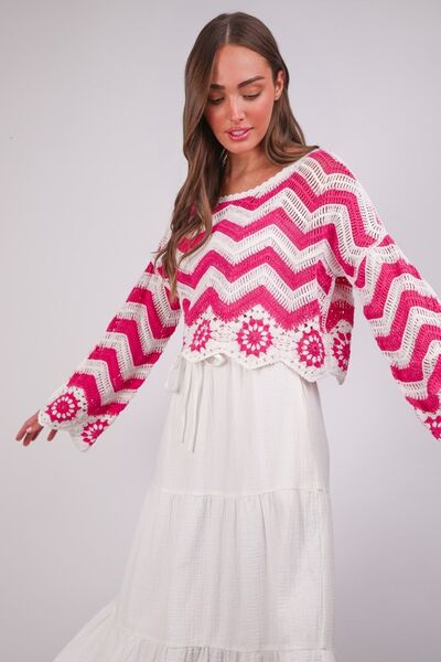 Chevron/Floral Pattern Crochet Knit Top