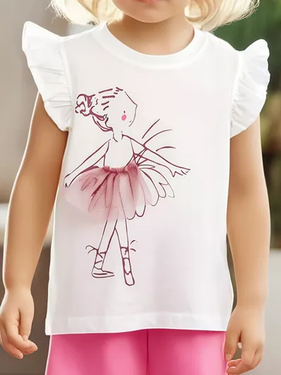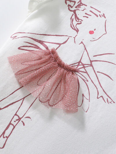 Children's Ballerina Graphic Ruffle Sleeve Top
