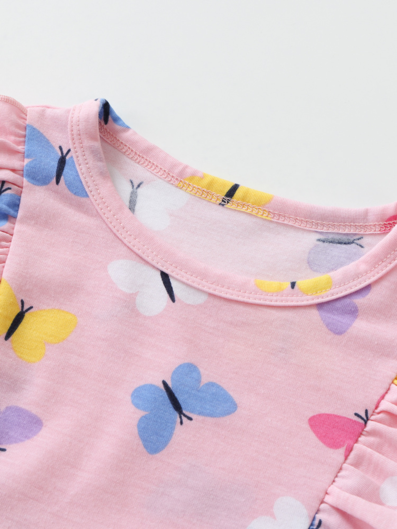 Children's Butterfly Print Ruffle Trim Long Sleeve Dress