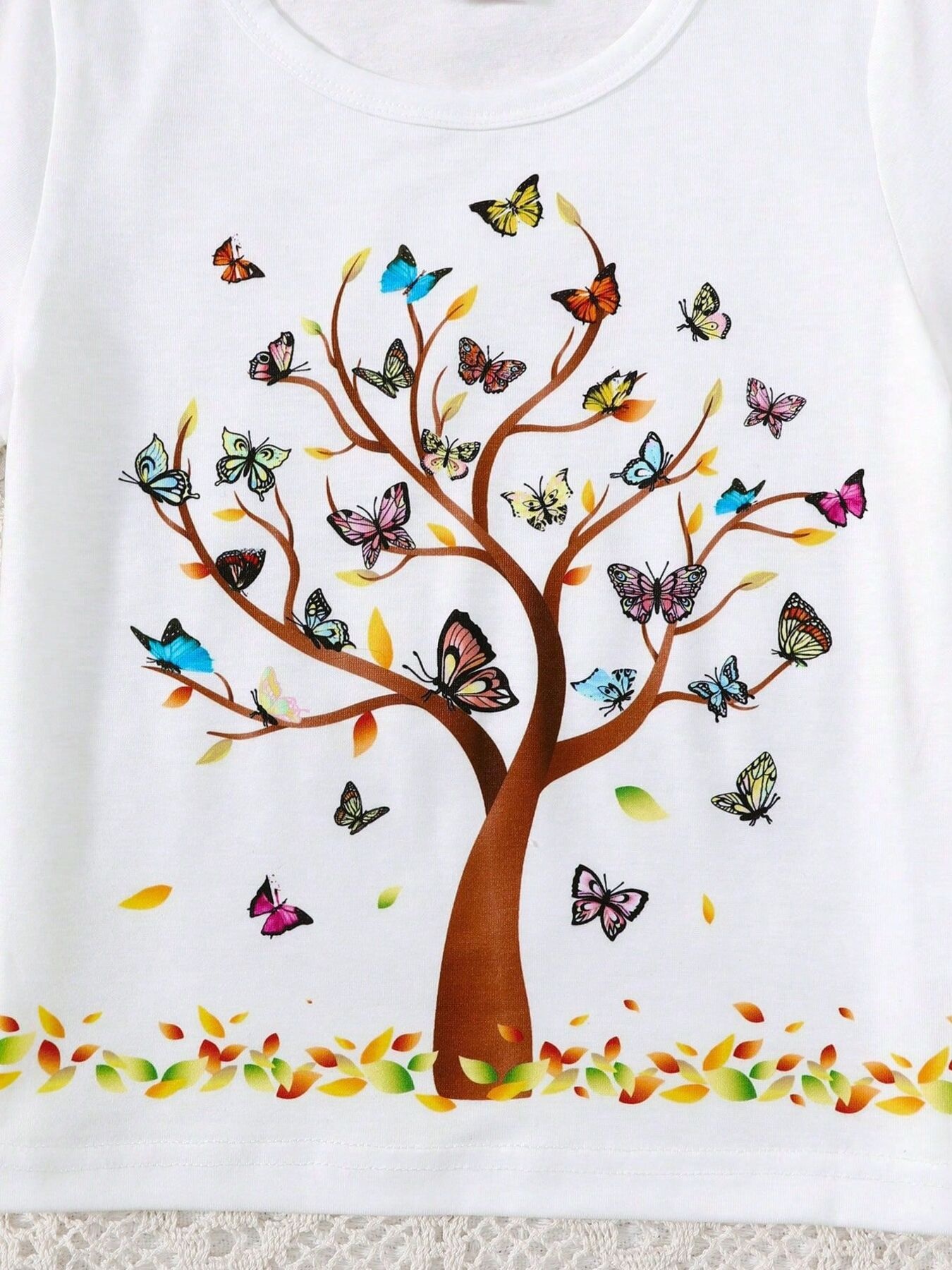 Children's Butterfly Tree Graphic Casual T-Shirt