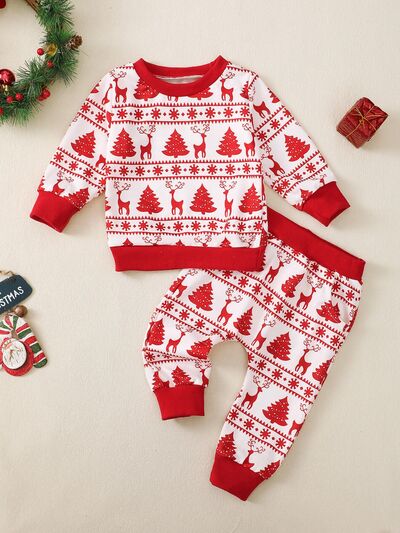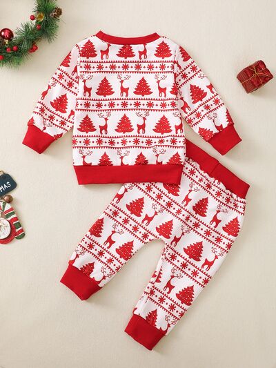 Children's Christmas Reindeer & Tree Print Top and Pants Set