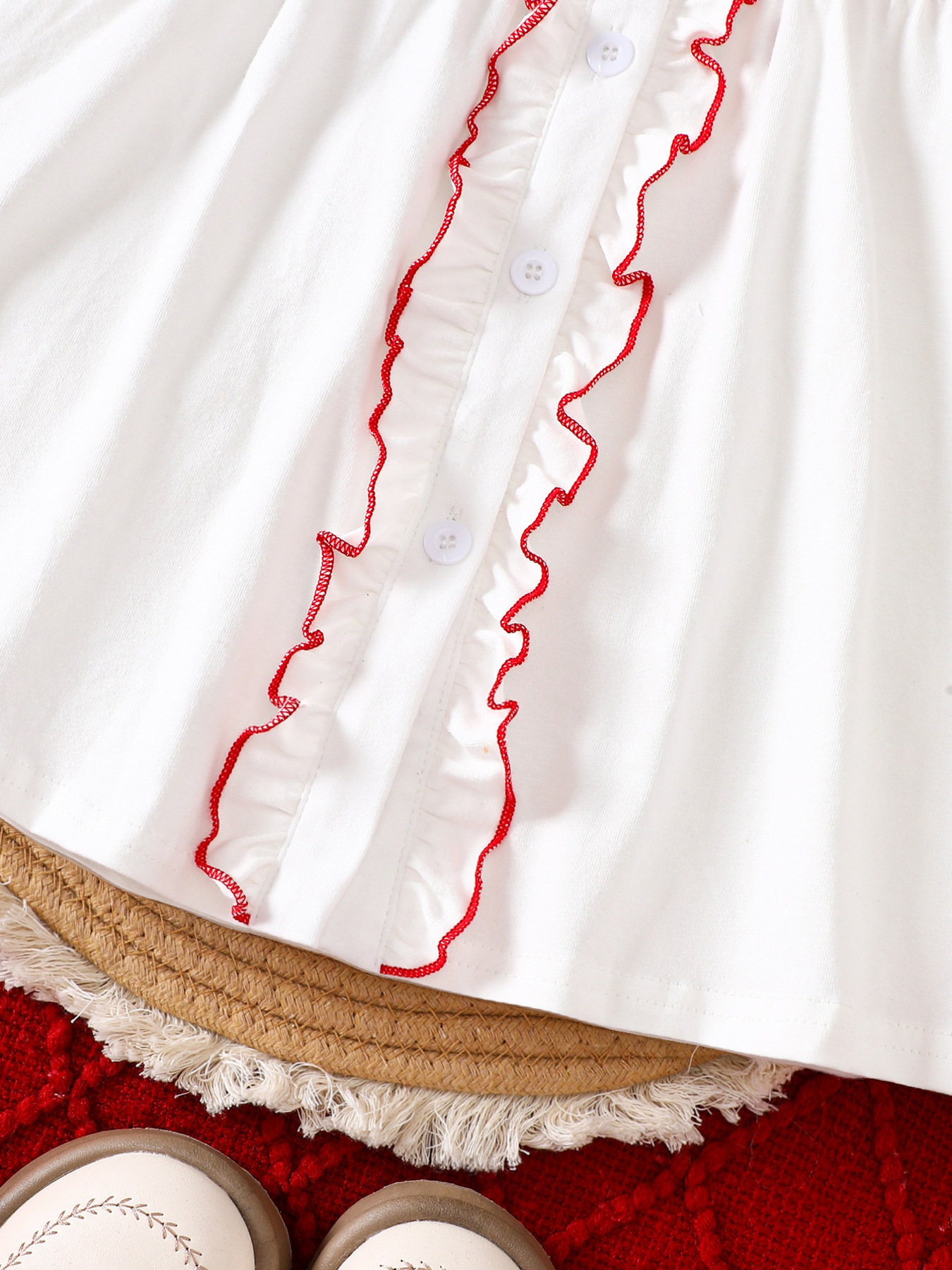 Children's Christmas Tree Embroidered Ruffle Trim Dress