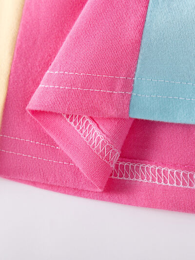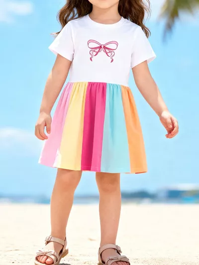 Children's Color Block Bow Short Sleeve Dress