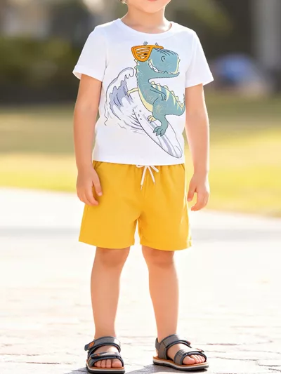 Children's Dinosaur Graphic Tee and Shorts Outfit Set