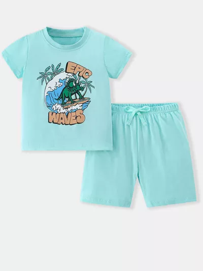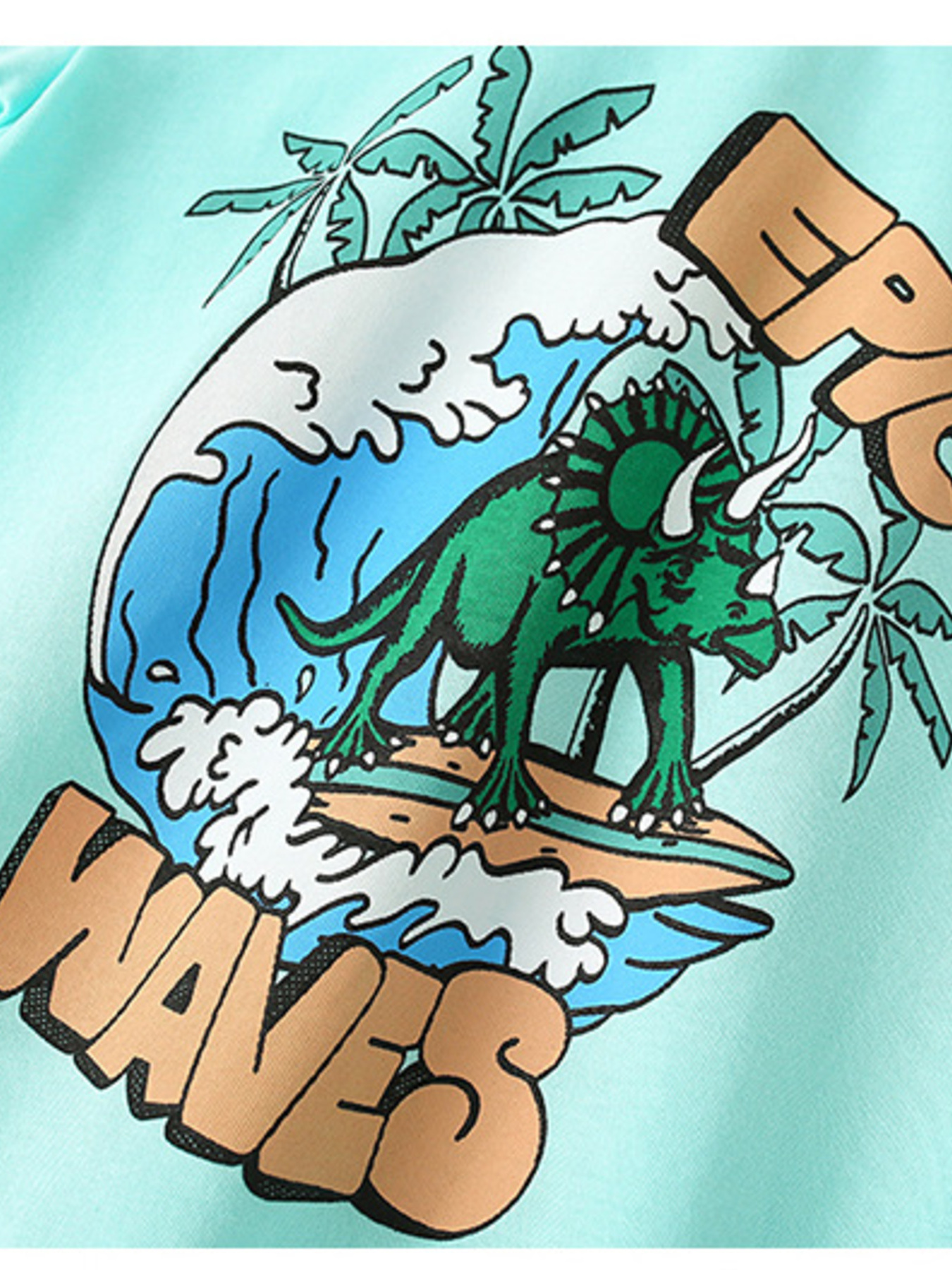 Children's Dinosaur Surfing Adventure Graphic T-Shirt and Shorts Set