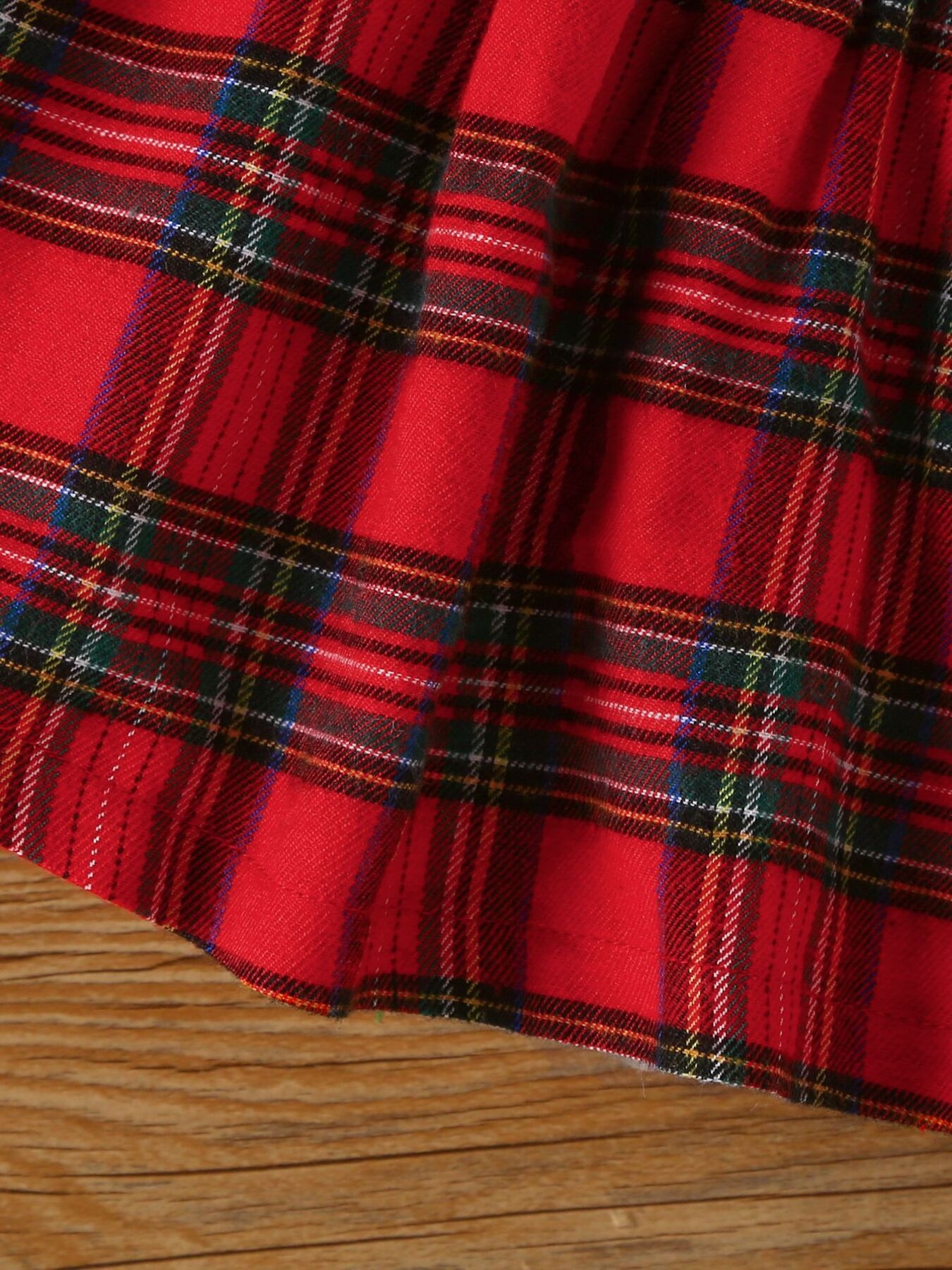 Children's First Christmas Bodysuit and Plaid Dress Outfit Set with Headband