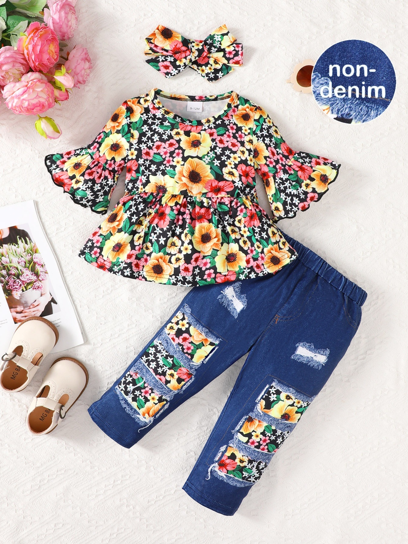 Children's Floral Bell Sleeve Top and Pants Set