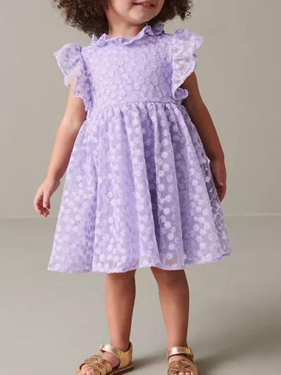 Children's Floral Lace Ruffle Sleeve Party Dress