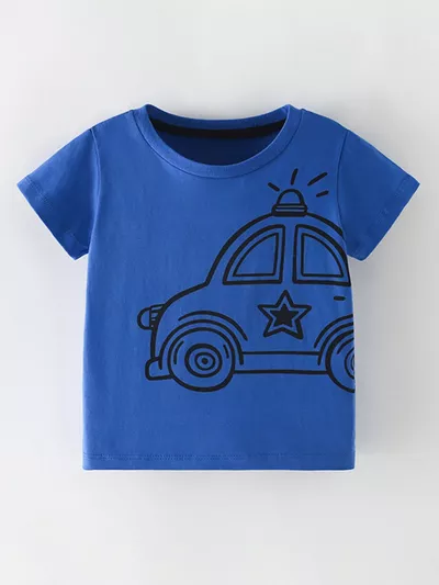 Children's Fun Police Car Graphic Short Sleeve T-Shirt