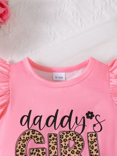 Children's Headband Letter Ruffle Sleeve Top and Shorts 3-Piece Set