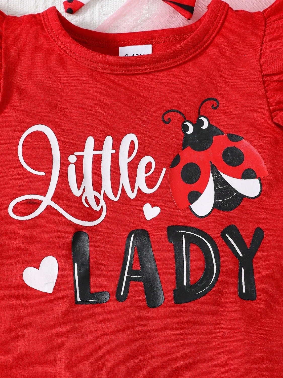 Children's Headband, Round Neck Ruffle Sleeve Top and Pants Set