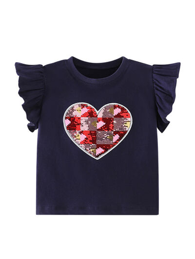 Children's Heart Sequin Ruffle Sleeve T-Shirt