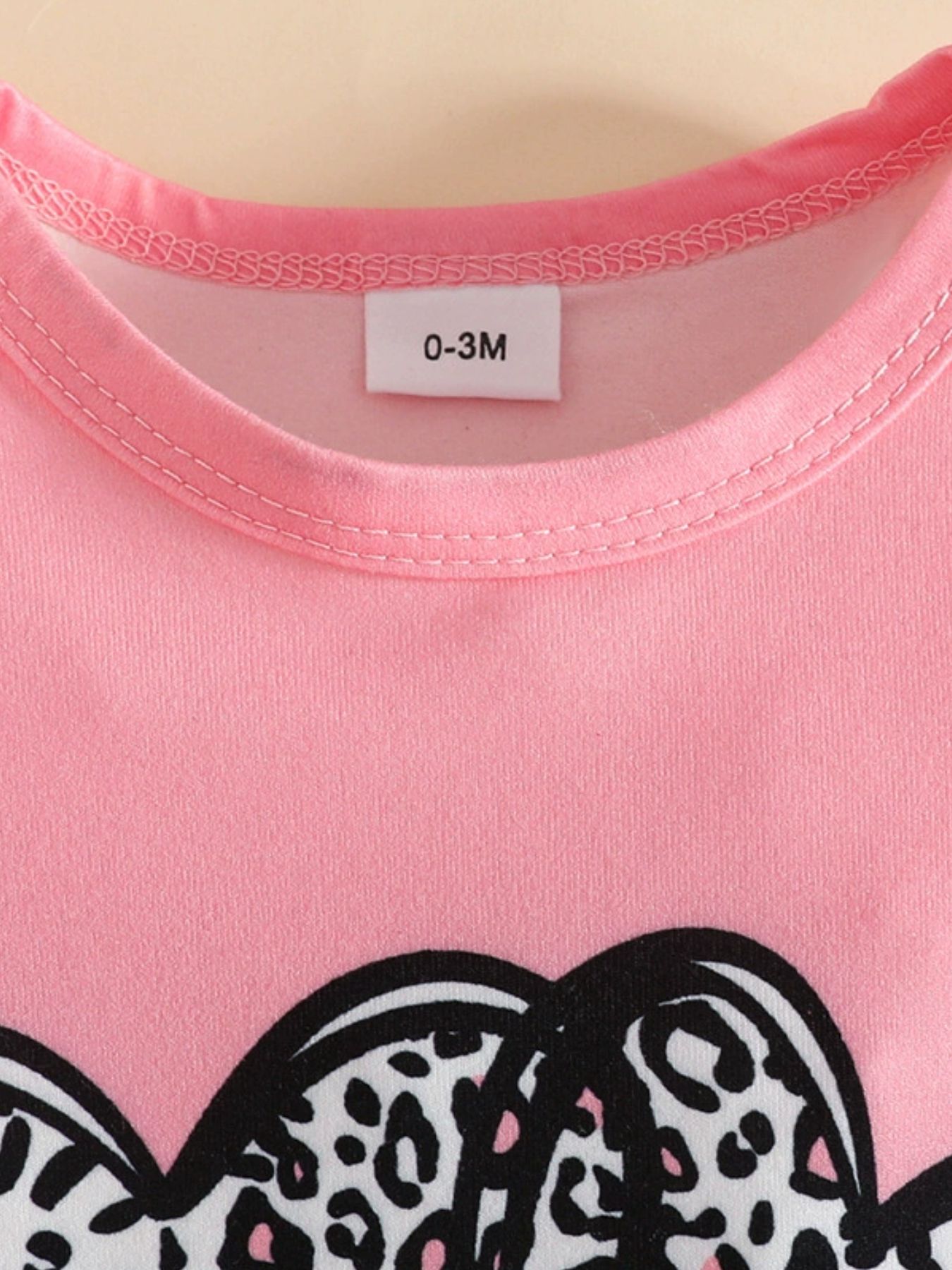 Children's Leopard Heart Bodysuit and Shorts Set with Headband