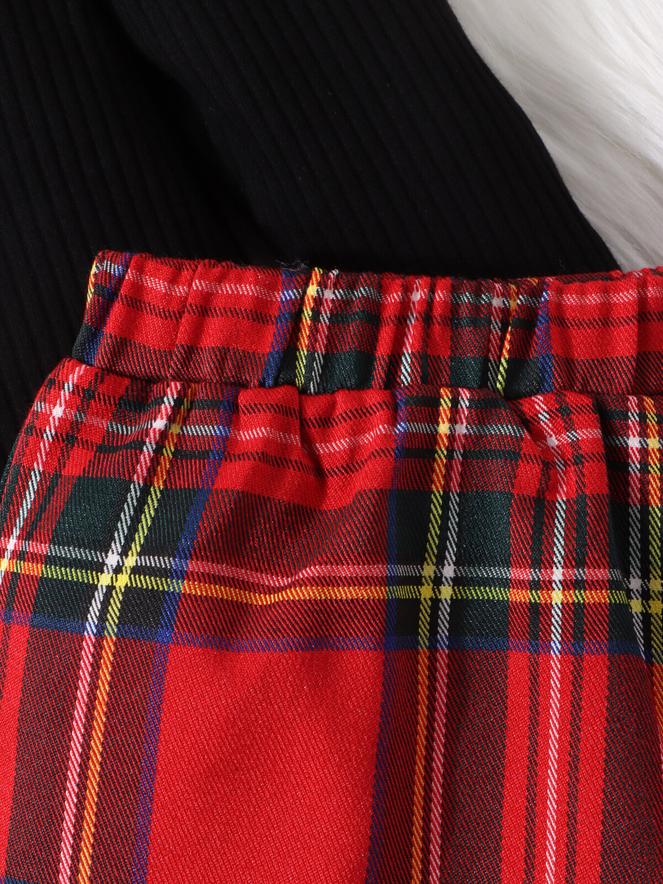 Children's Ribbed Knit Top & Plaid Skirt Set