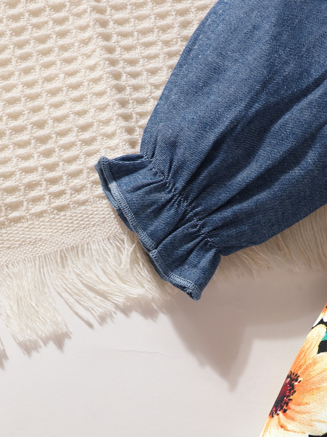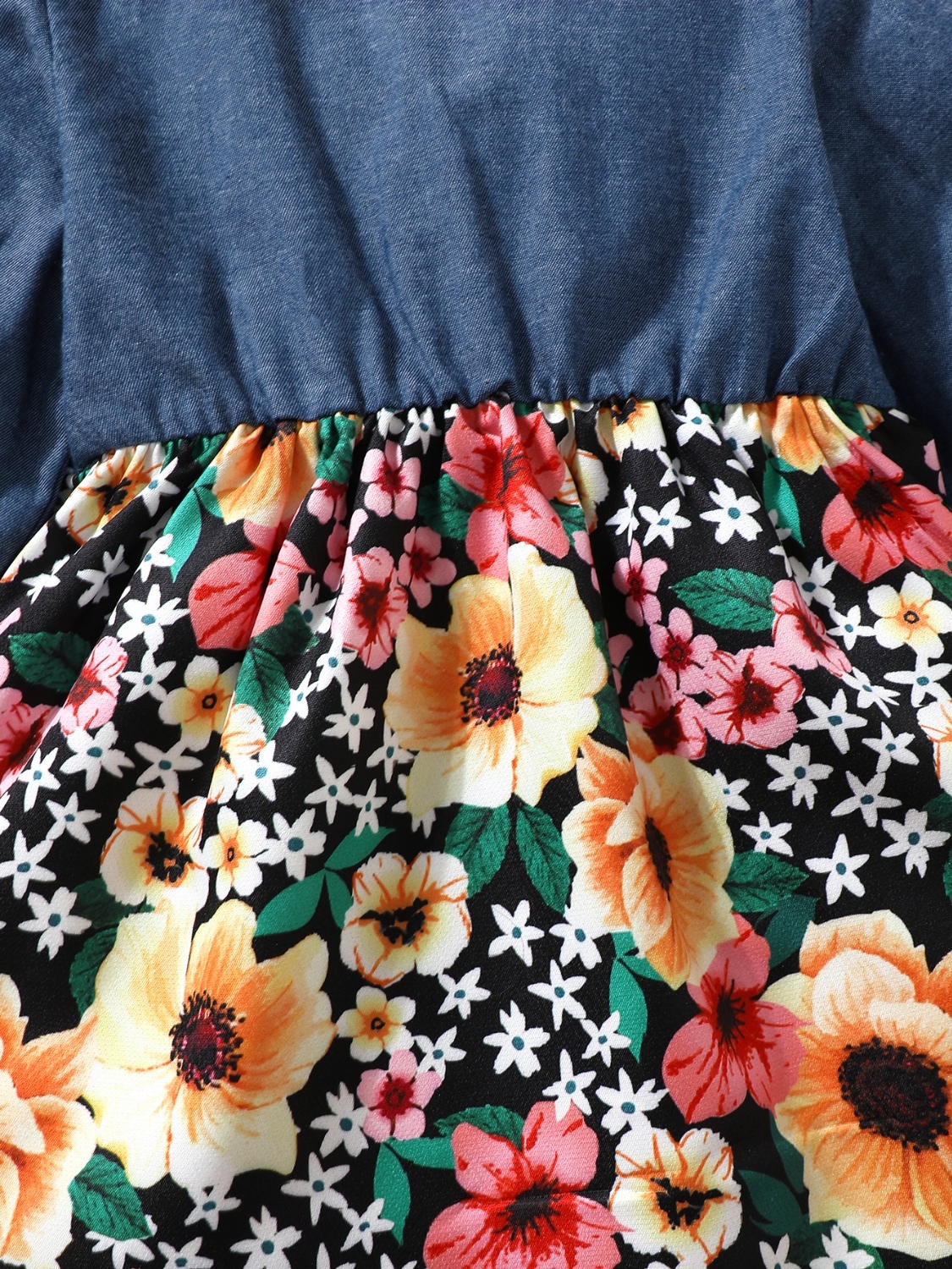 Children's Ruffled Bow Contrast Floral Dress with Headband