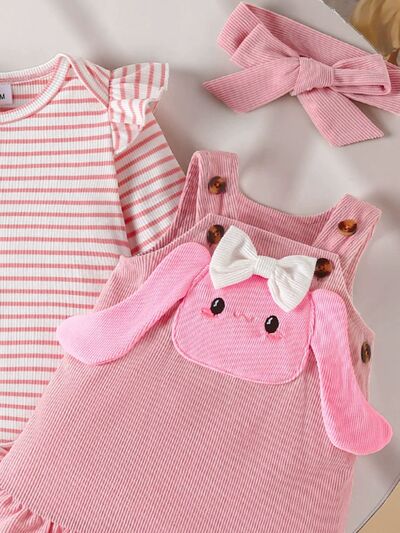 Children's Ruffled Trim Bodysuit and Dress Set with Headband