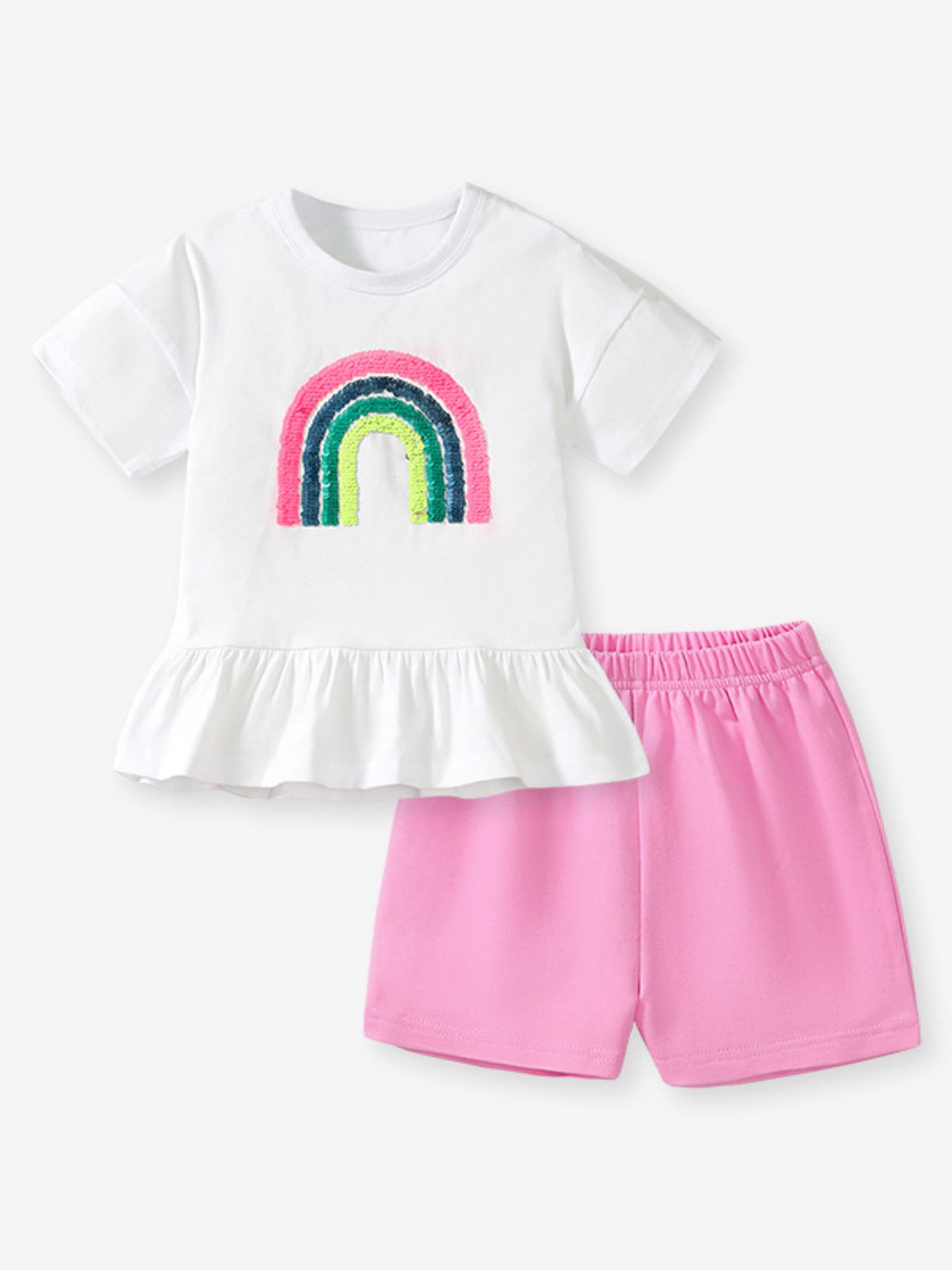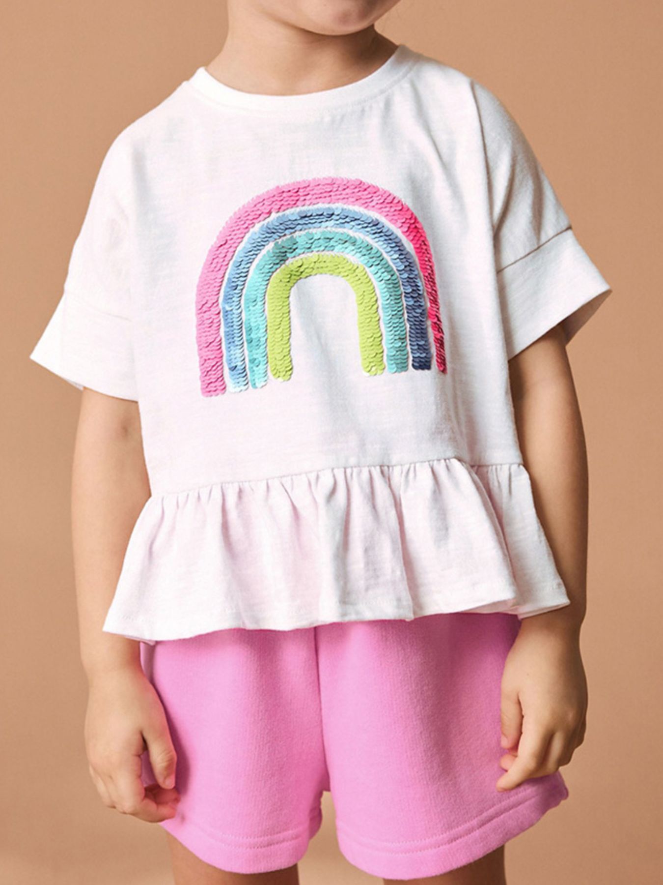 Children's Sequin Rainbow Ruffle Hem Top and Shorts Set