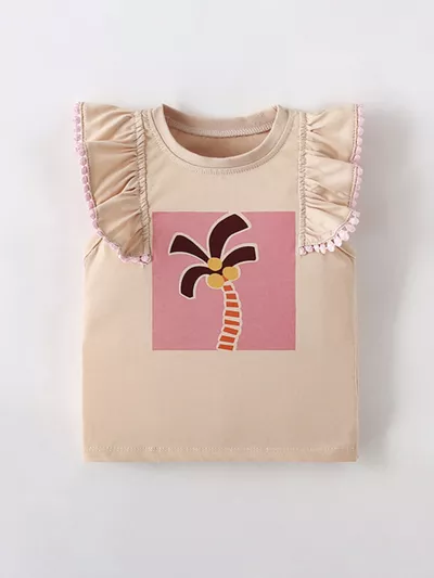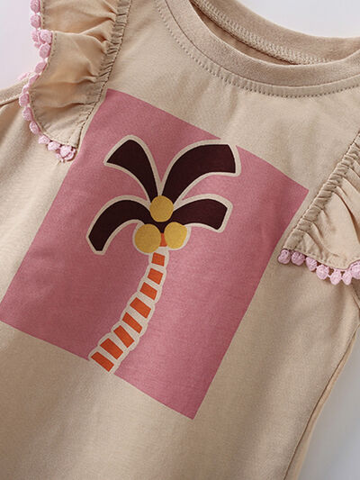 Children's Sleeveless Palm Tree Graphic T-Shirt with Ruffle Trim