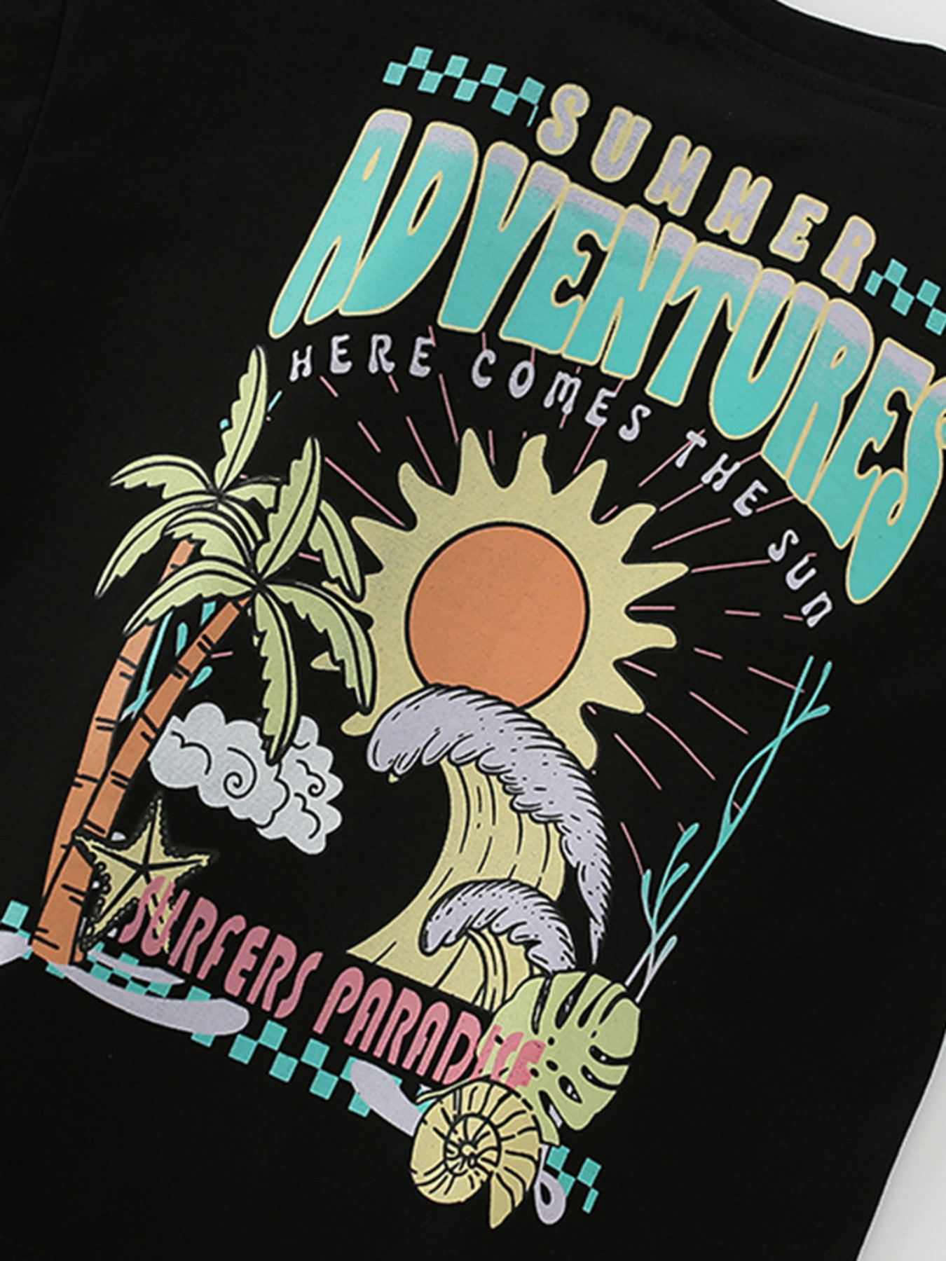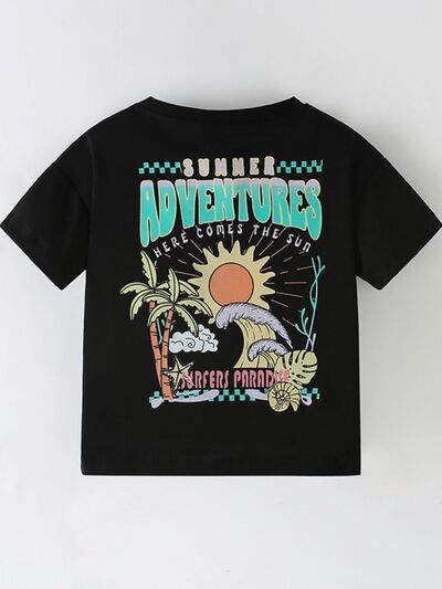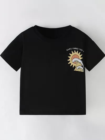 Children's Summer Sun & Wave Graphic Short Sleeve T-Shirt