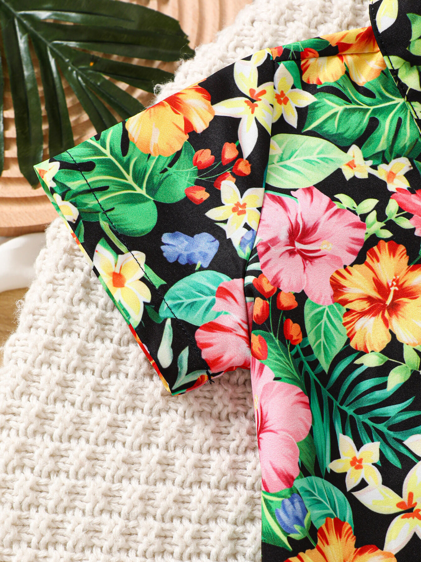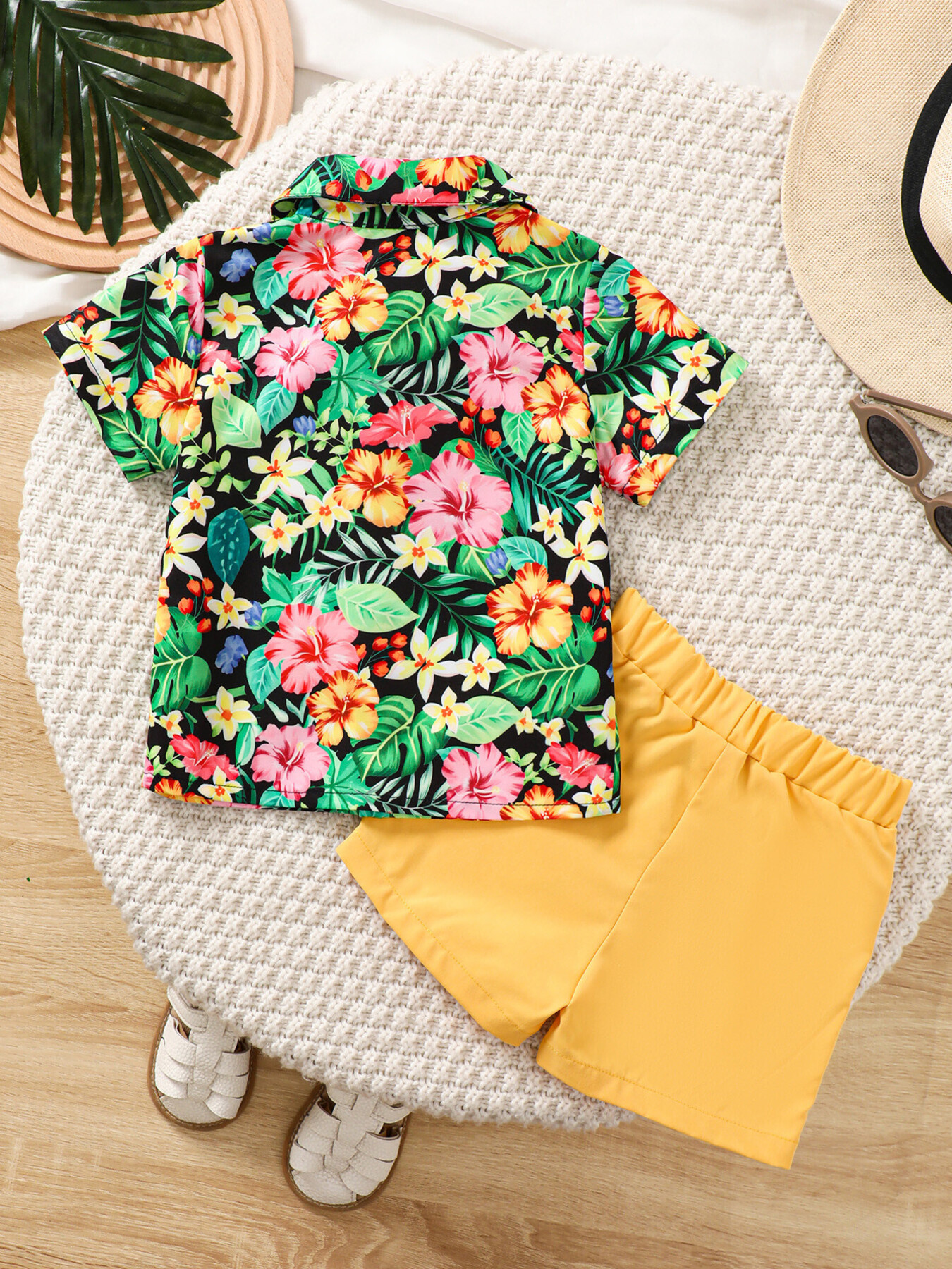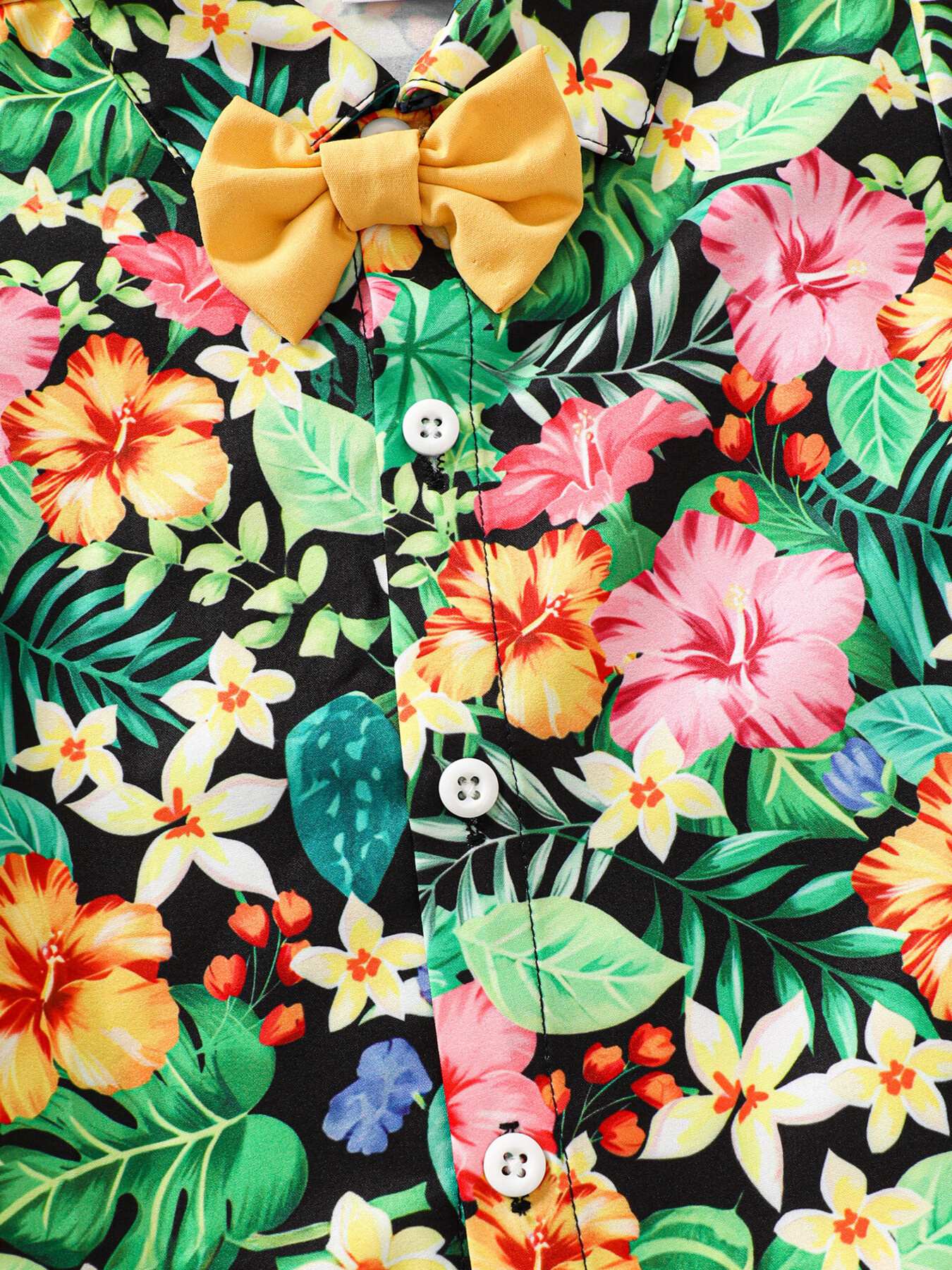 Children's Tropical Print Shirt & Solid Shorts with Bow Tie Set