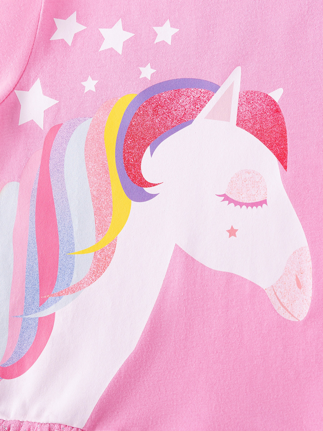 Children's Unicorn Print Long Sleeve Tulle Dress