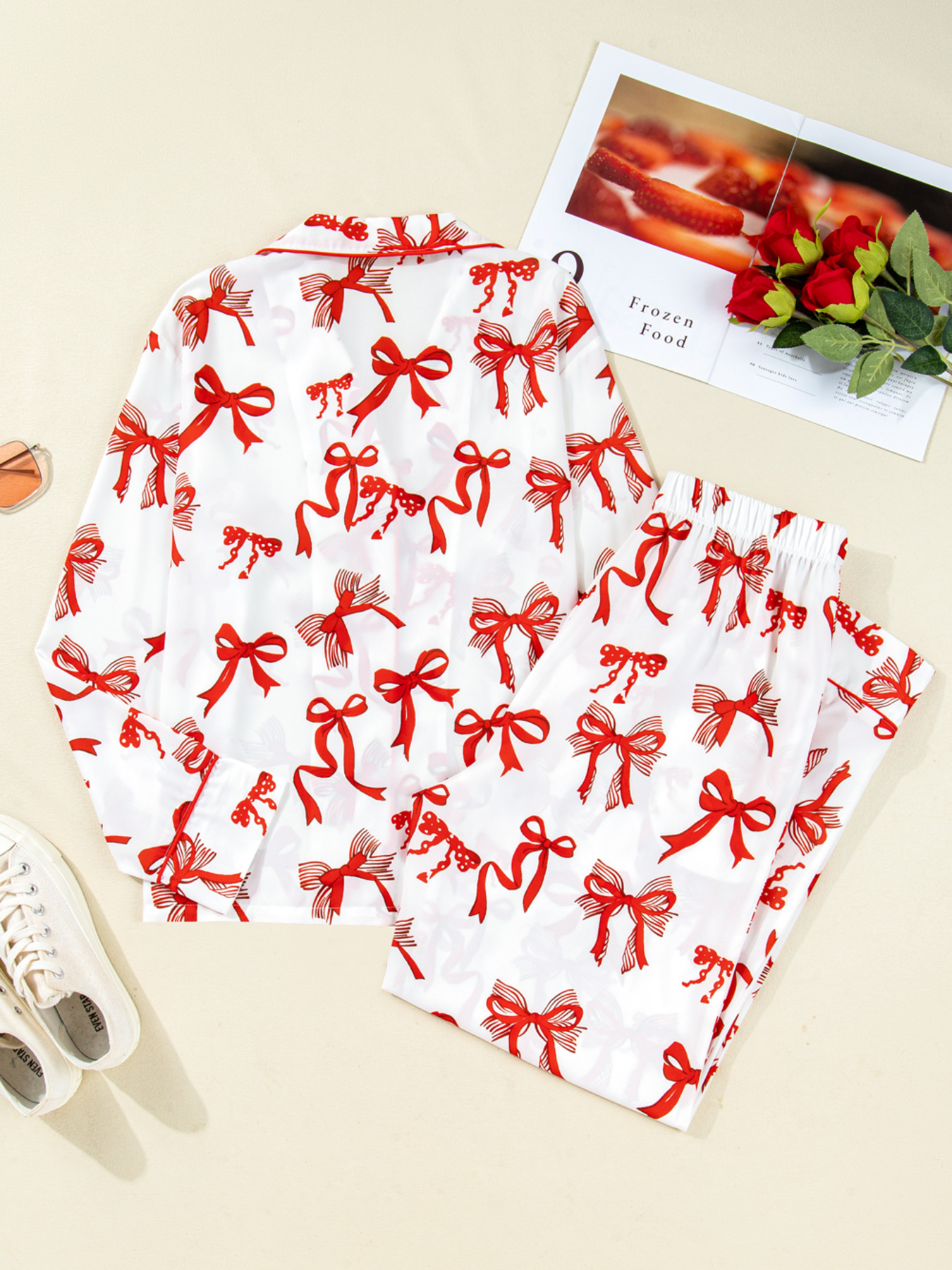 Christmas Bow Print Top and Pants 2pcs Pajama Set