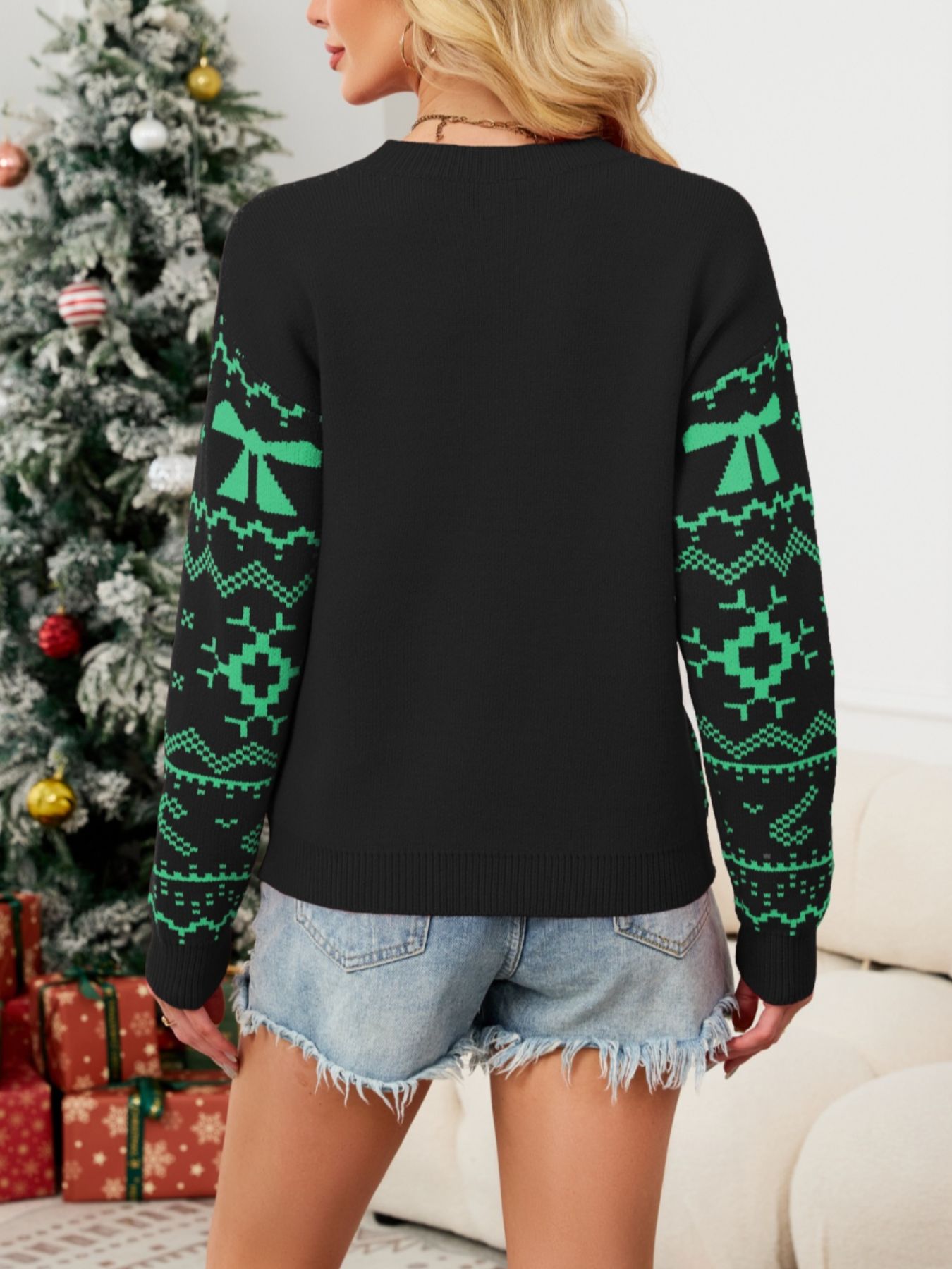 Christmas Bow Round Neck Sweater
