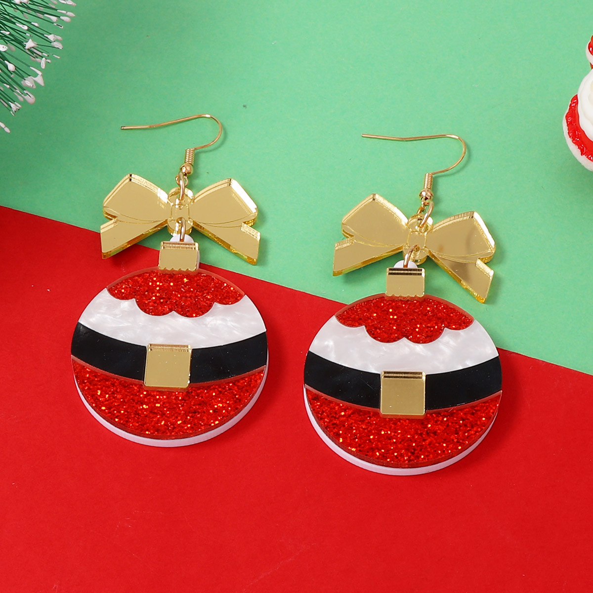 Christmas Dangle Earrings with Bow