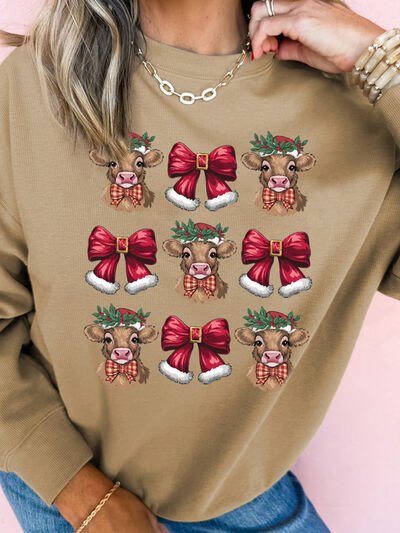 Christmas Heifer Bow Knot Print Casual Sweatshirt