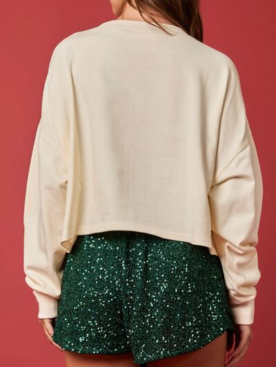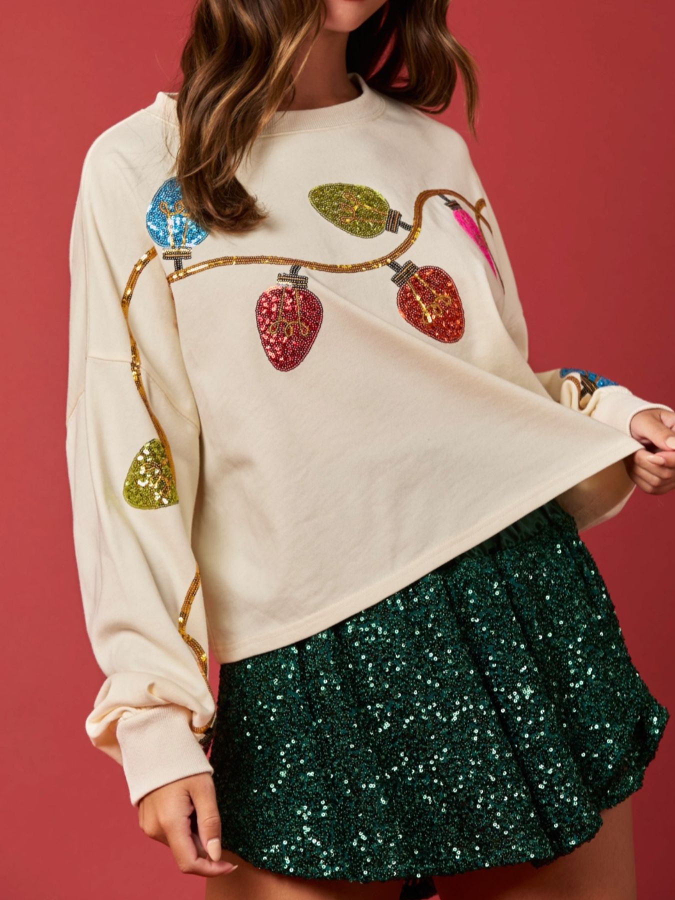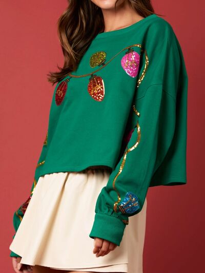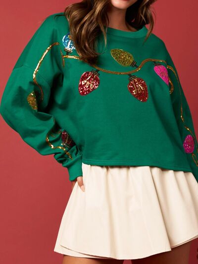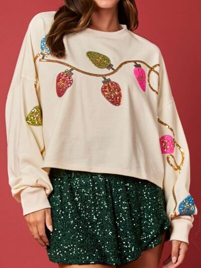 Christmas Holiday Lights Sequin Embellished Sweatshirt