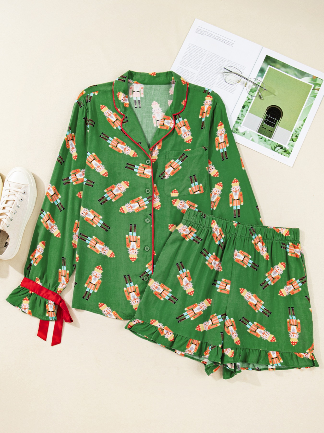 Christmas Nutcracker Button Up Top and Shorts Lounge Set