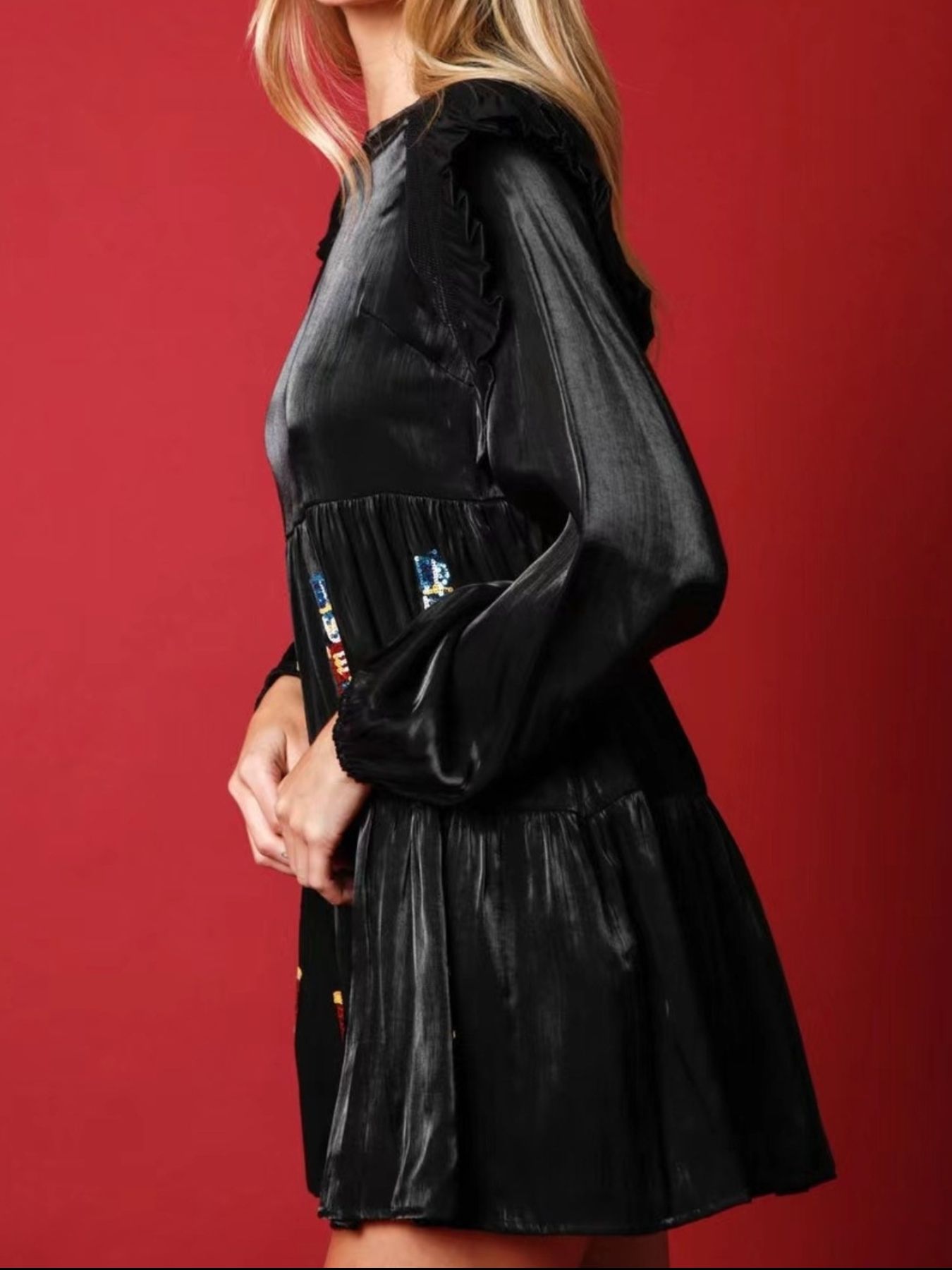 Christmas Ruffled Nutcracker Long Sleeve Dress