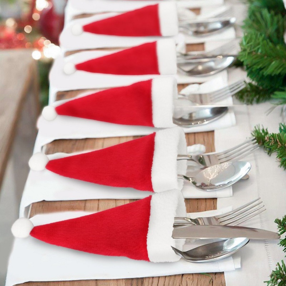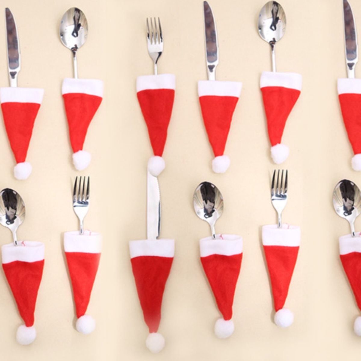 Christmas Santa Hat Cutlery Holders Decorative Table Setting