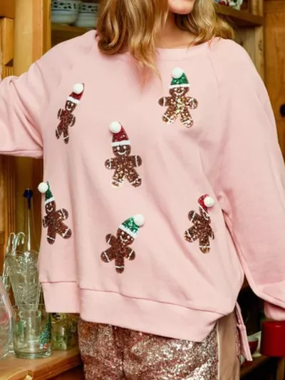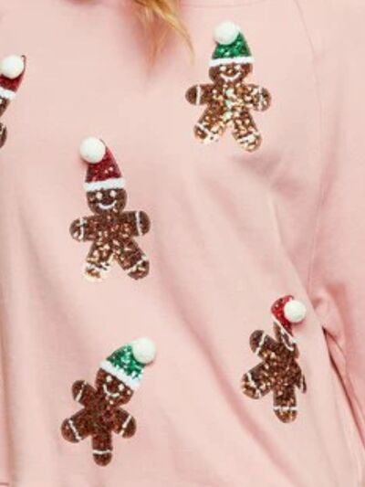 Christmas Sequin Gingerbread Round Neck Sweatshirt