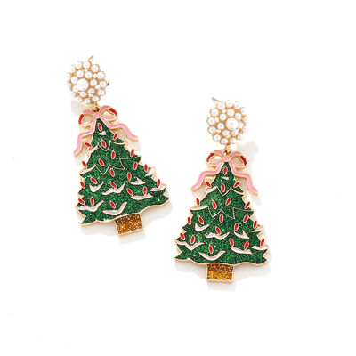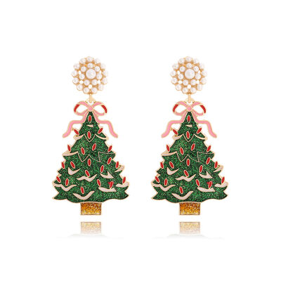 Christmas Tree Dangle Earrings with Pearl