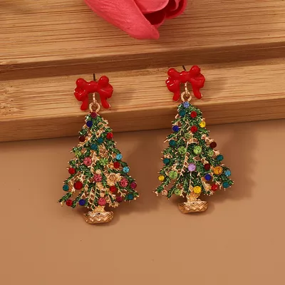 Christmas Tree Earrings with Bow