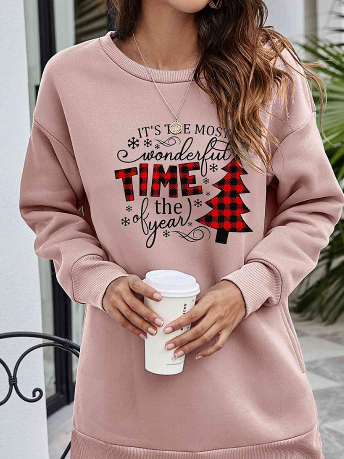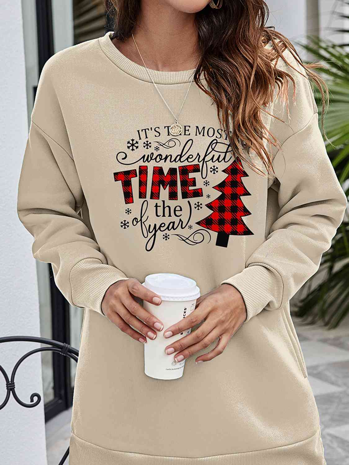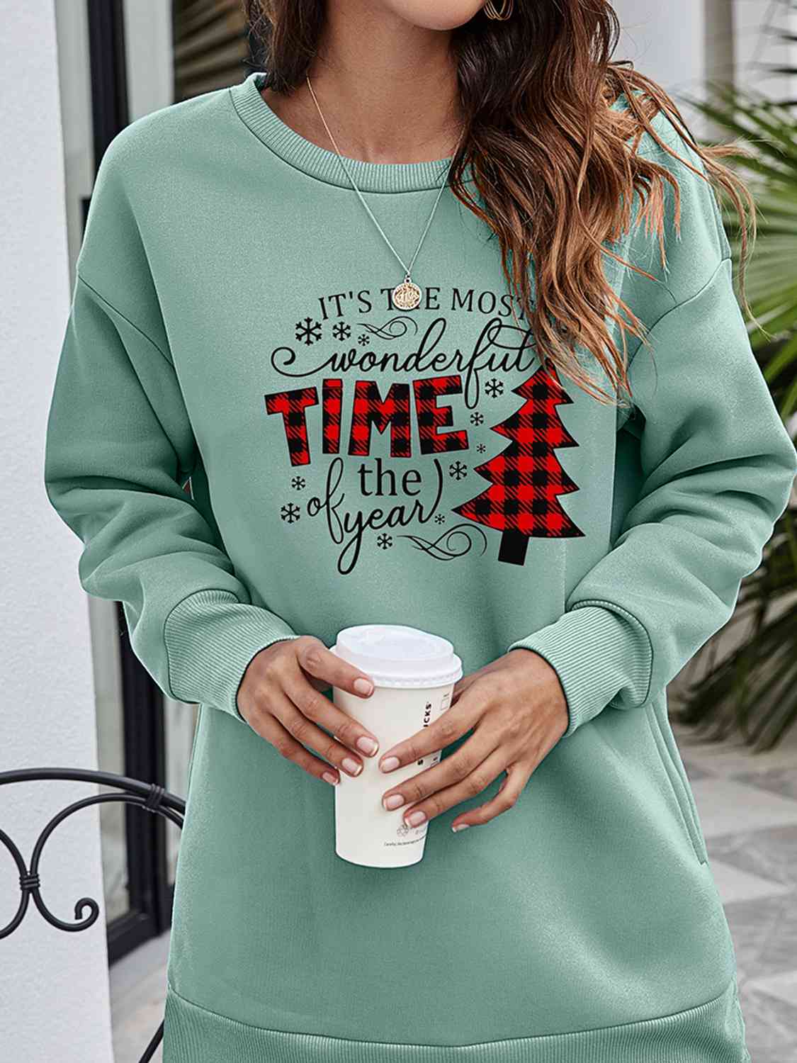 Christmas Tree Graphic Drop Shoulder Sweatshirt