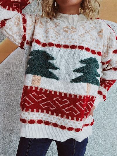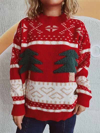 Christmas Tree Mock Neck Long Sleeve Sweater