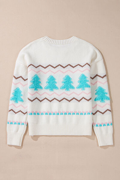 Christmas Tree Ribbed Hem Dropped Shoulder Sweater