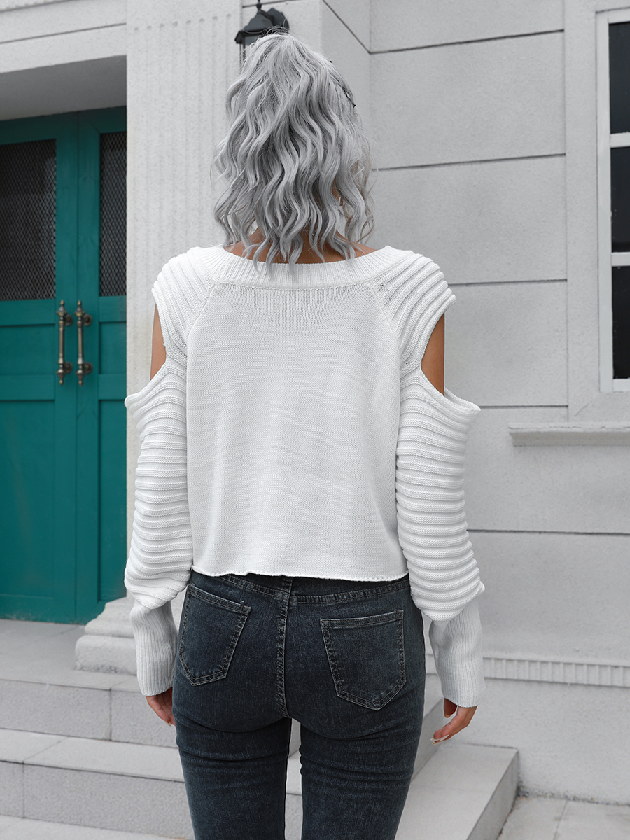Cold-Shoulder Ribbed Trim Sweater