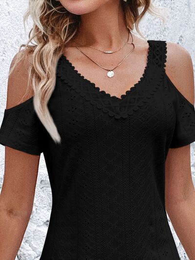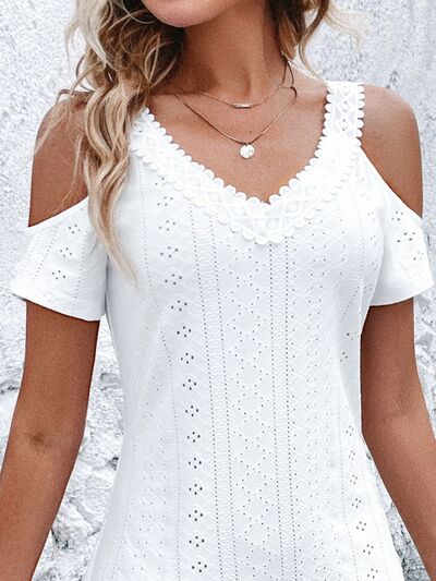 Cold Shoulder Short Sleeve Eyelet Mini Dress